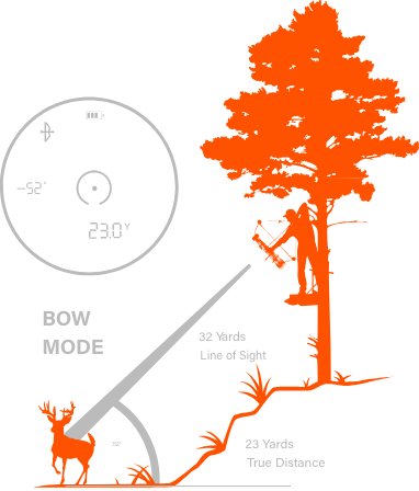 Även om avståndet till målet är känt påverkar extrema skjutvinklar (uppåt/nedåt) träffläget. ARC räknar ut det horisontella avståndet (True Distance) som man kan korrigera efter.