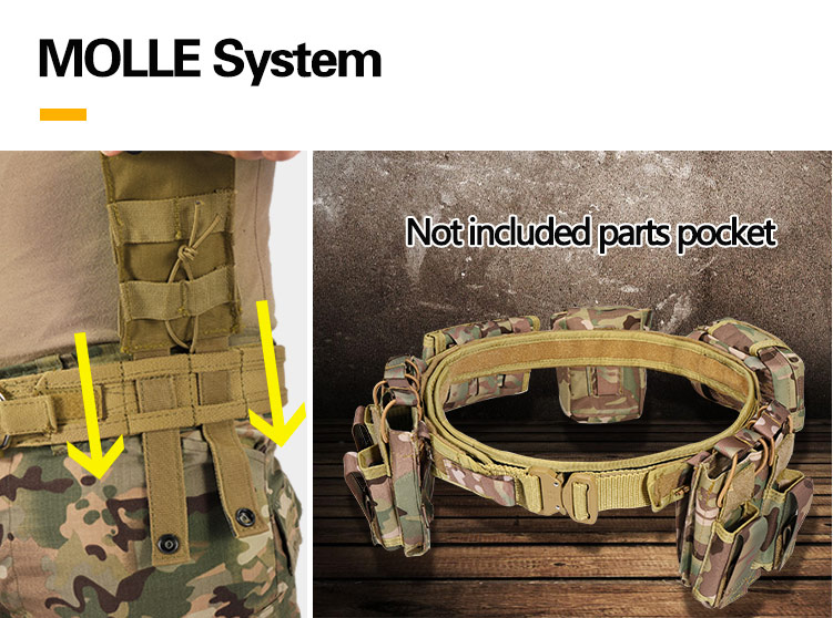 Bältet har ett smart MOLLE-system för att lättsamt fästa extra fickor och dylikt.