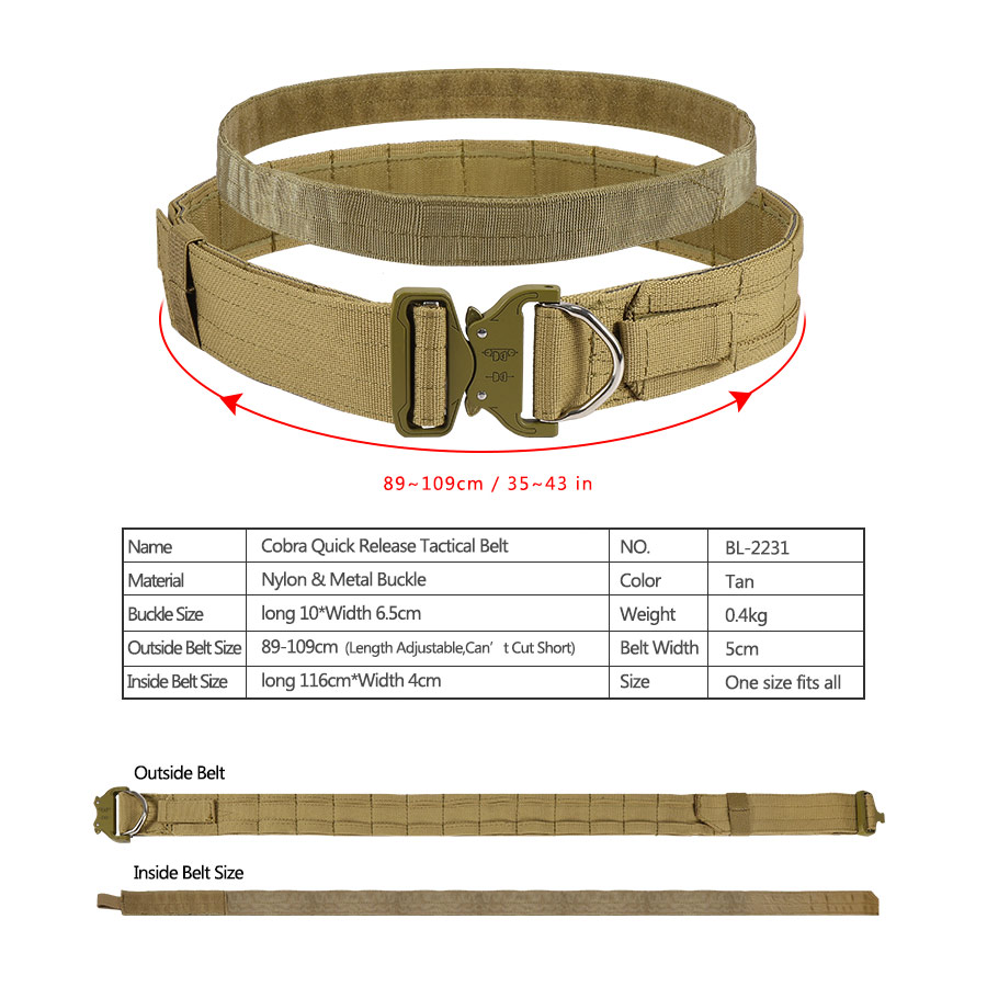 Cobra Quick Release Taktiskt Bälte + Inner bälte Tan