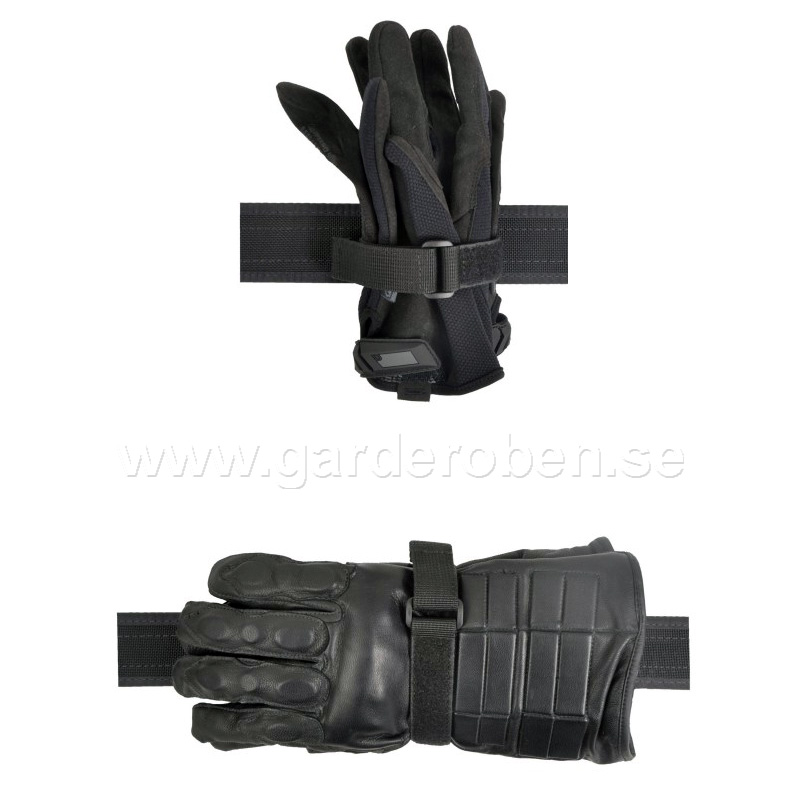 Handshållaren är ett självklart tillbehör på polisens, ordningsvaktens eller väktarens ytterbälte för smidig och säker förvaring av handskar i krävande miljöer.