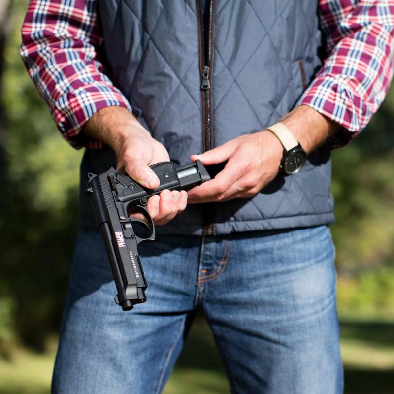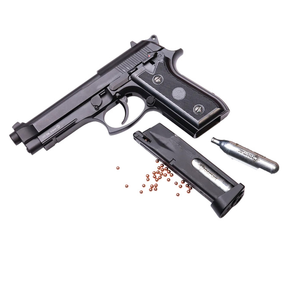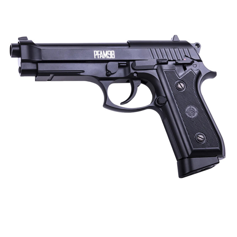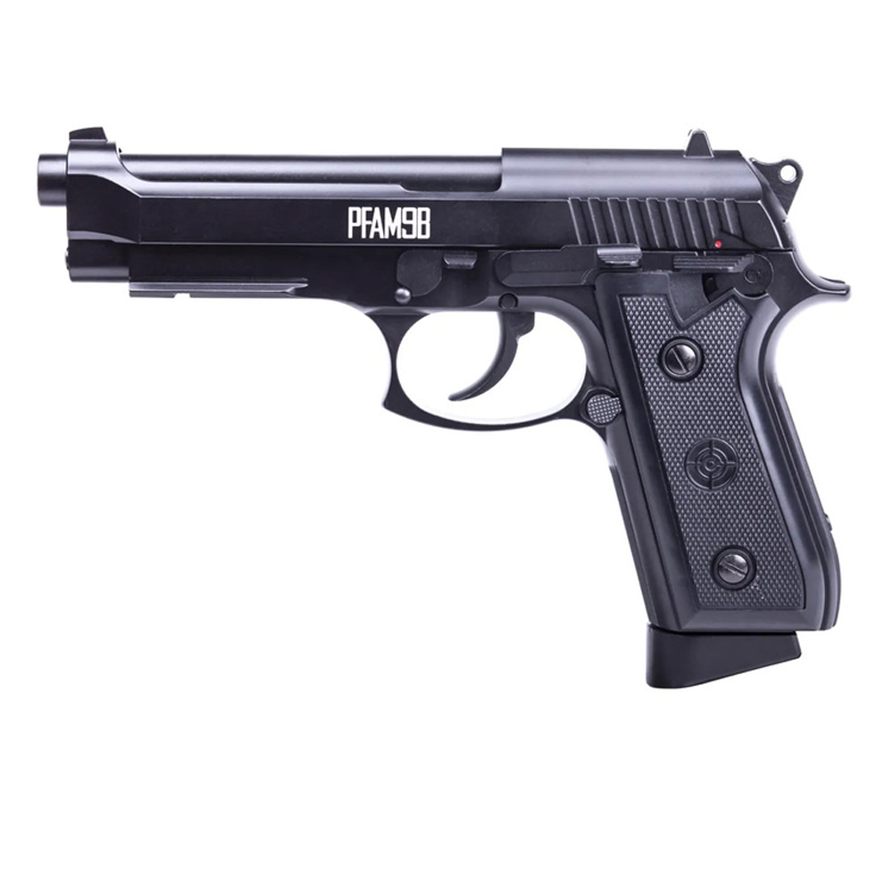 Crosman PFAM9B är en kraftfull CO₂-driven BB-pistol i kaliber 4,5 mm som erbjuder både halvautomatisk och helautomatisk eld för en realistisk och dynamisk skytteupplevelse. Med blowback-funktion simuleras rekyl genom mantelrörelse vid varje skott, vilket ger en autentisk känsla. Den robusta metallkonstruktionen ger både hållbarhet och realistisk vikt. Pistolen drivs av en 12 g CO₂-patron och skjuter stålrundkulor med hastigheter upp till 122 m/s. Det löstagbara 20-skottsmagasinet gör omladdning enkel och smidig. Perfekt för träning, målskytte och underhållande skytte med hög eldhastighet.