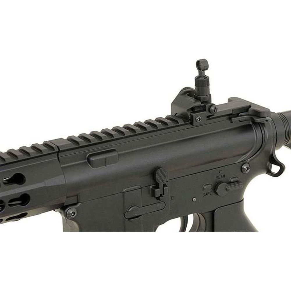 Cyma CM515 M4 Long RIS är ett elektriskt airsoftgevär i Sports Line-serien, designat för både nybörjare och erfarna spelare som vill ha en kraftfull men prisvärd M4-plattform. Med en metall V2 gearbox, hi-torque motor, justerbar hop-up och robust konstruktion i polymer och metall är detta ett utmärkt val för seriöst spel. Levereras med ett 300-skotts magasin och skjuter över 350 FPS.