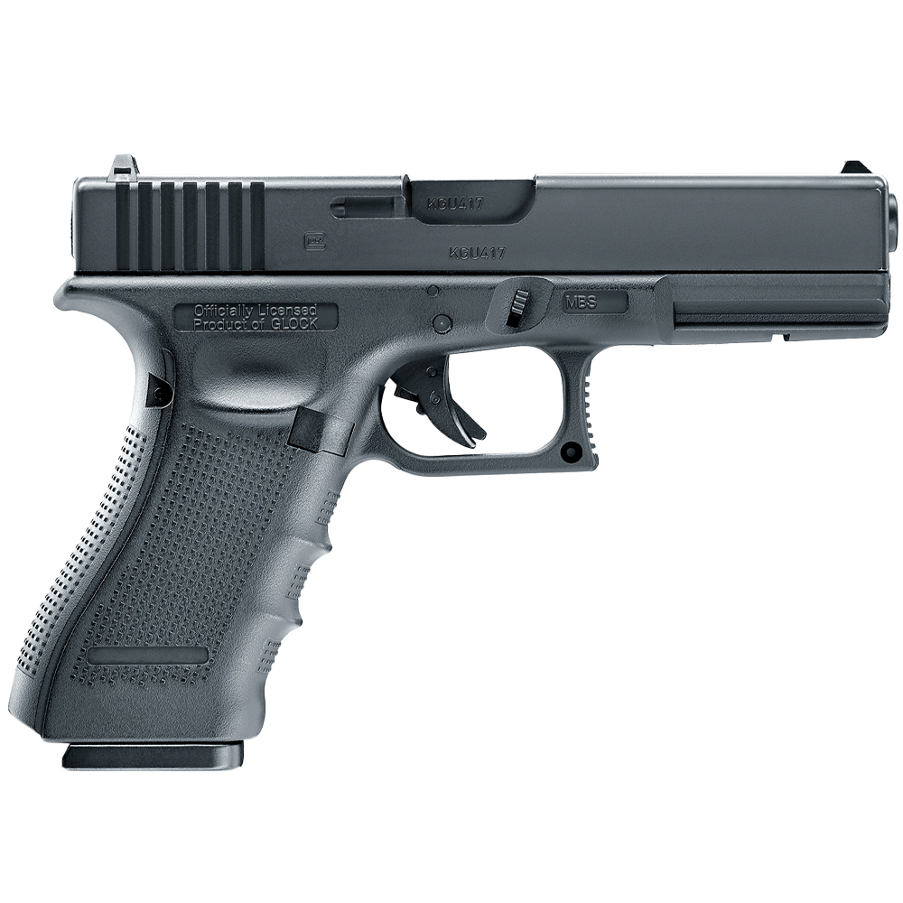 Gaston Glocks sjuttonde patent - Glock 17 - kom att bli en otrolig succé och tillverkaren erbjuder idag ett brett sortiment av pistoler med många olika egenskaper. Plattformen finns i olika storlekar, kalibrar samt nu även i licensfria versioner med kolsyra eller gas som drivmedel. Perfekt för övningsskytte eller scenariospel.