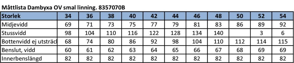 Dambyxa i rak och smal modell.
