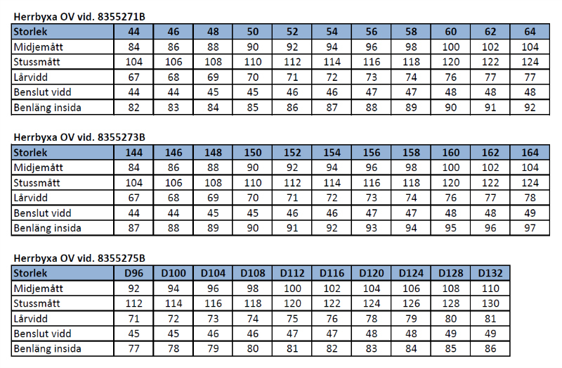 Två fickor fram samt en vänster bak. Pressveck och hällor för bälte.