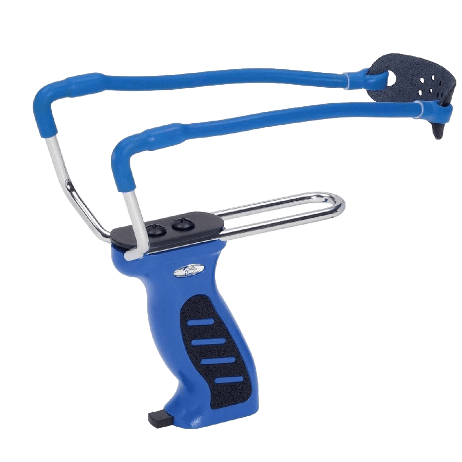 Haller Slingshot i blått med kulmagasin.