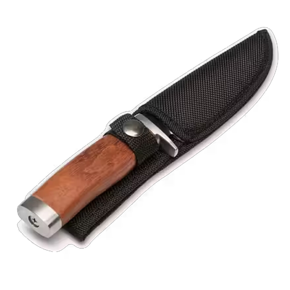 Kniven levereras med en kraftig polyesterficka/slida med bältesfäste, vilket gör den enkel att bära med sig på jakt eller vandring. En perfekt kombination av ergonomi, funktion och stil för både nybörjare och erfarna jägare.