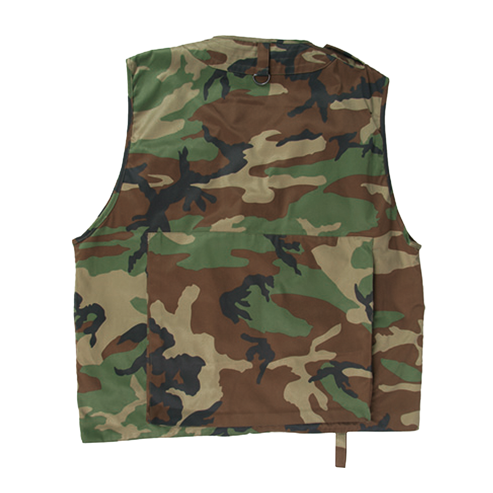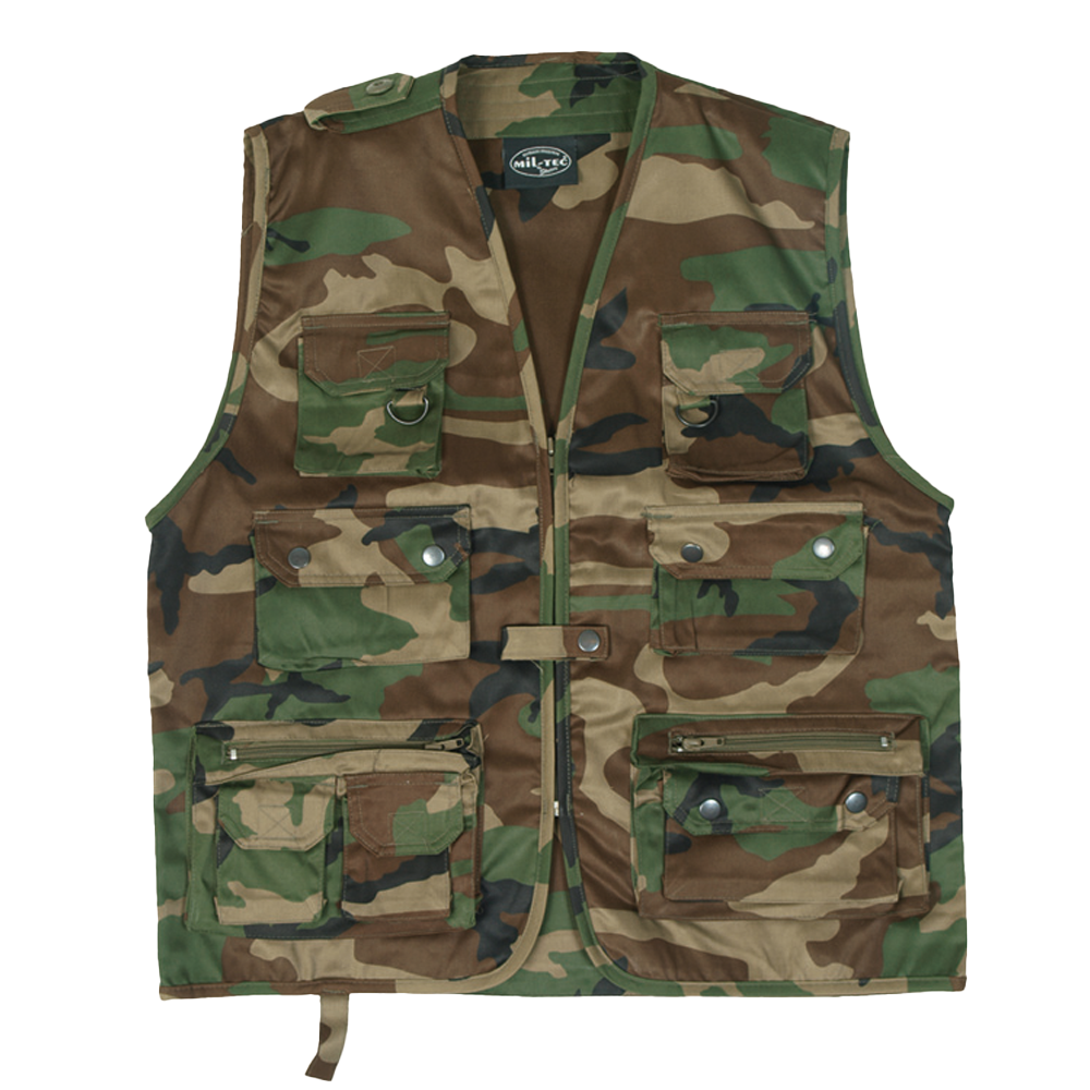 Västen i woodland camouflage med 14 fickor varav 4 innerfickor.