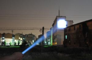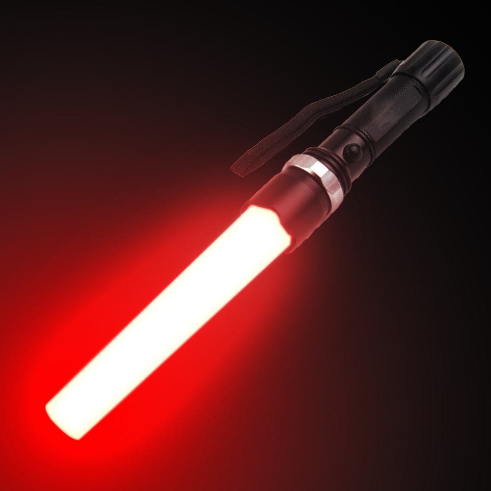 Ficklampa med zoom & röd trafikstav.