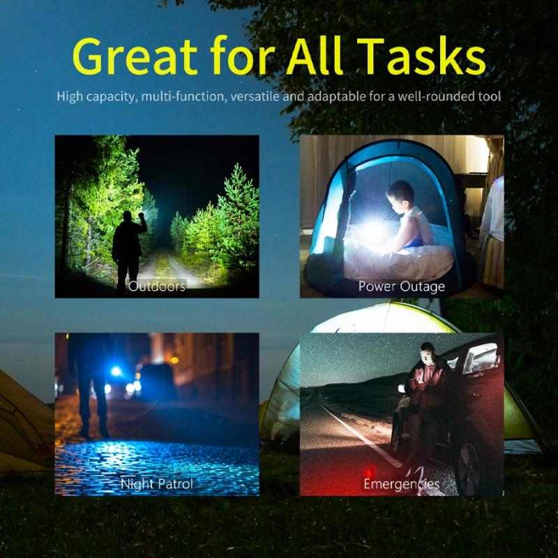 En lampa för många endamål, denna camping lanterna / ficklampa är på 8000mAh med Power Bank, 7 ljuslägen Led ficklampa för nödsituationer, camping, utomhus och prepping.