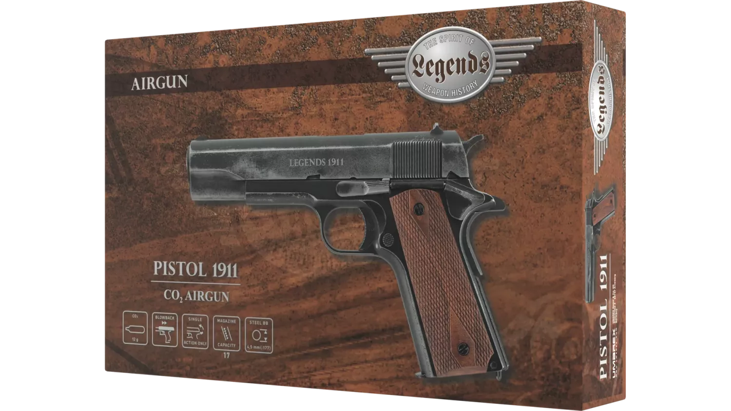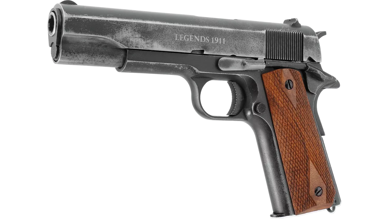 Varje exemplar har en unik sliten yta som ger en autentisk och robust känsla. Den kraftfulla blowback-funktionen ger en realistisk upplevelse för både skyttar och samlare. Med en kombinerad beavertail-greppssäkring och tummsäkring erbjuder denna pistol en säker och bekväm skjutupplevelse. Det oljade valnötgripet med klassisk diamantmönstring ger en touch av elegans till denna redan imponerande pistol. Upplev precisionen och skönheten hos Legends 1911 Vintage - en pistol som inte bara ser fantastisk ut, utan också levererar enastående prestanda vid varje skott.