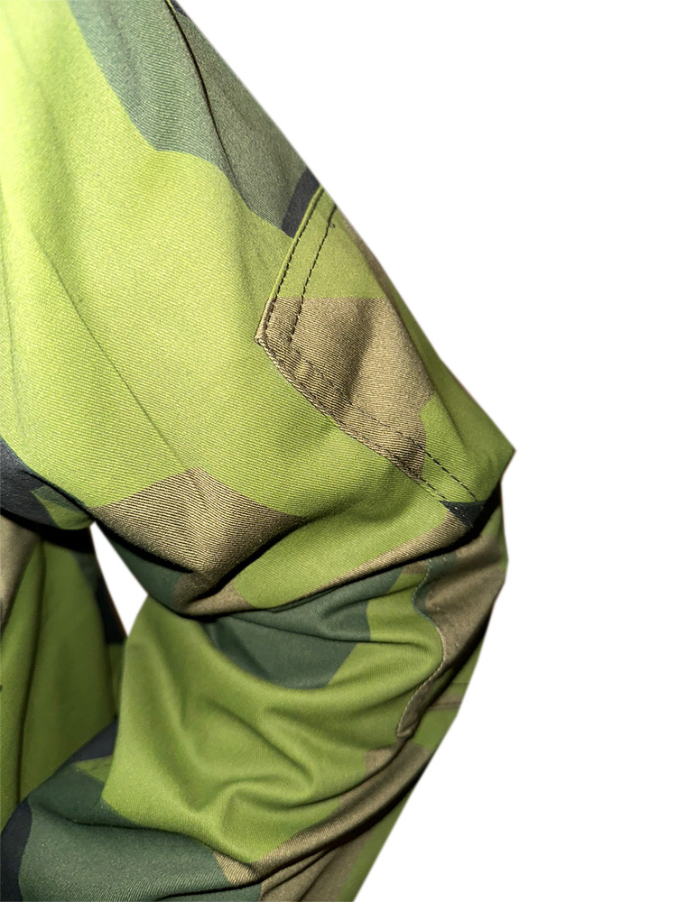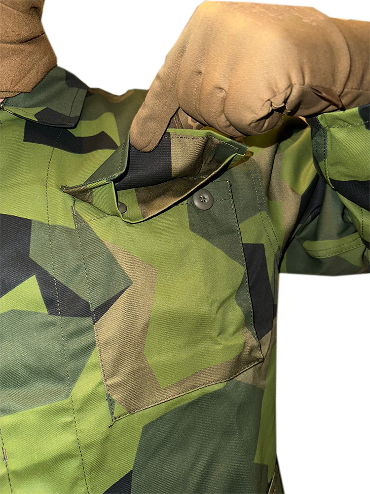 Jackan är av bra kvalitét, ett prisvärt alternativ till M90-originalet. Jackan har två fickor nedtill samt en bröstficka, och en öppning runt handleden som kan justeras med knappar.