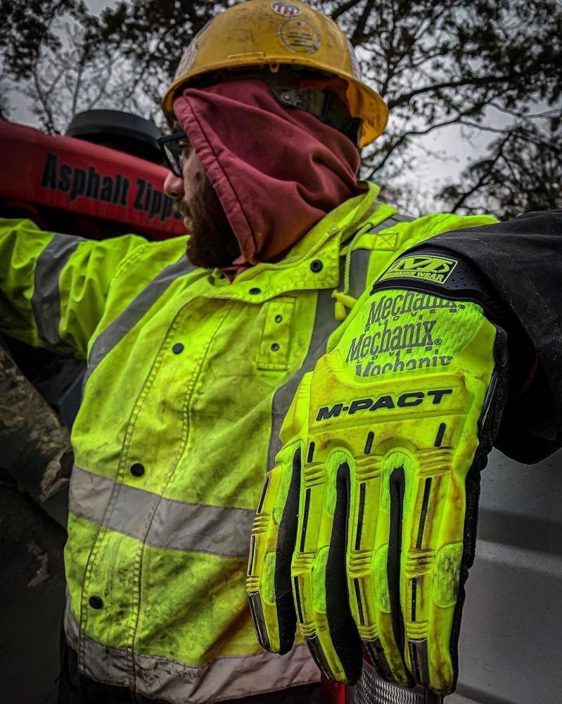 Hi-Viz M-Pact skyddar arbetande händer med termoplastiskt gummi (TPR) knogskydd och iögonfallande luminans i miljöer med svagt ljus.