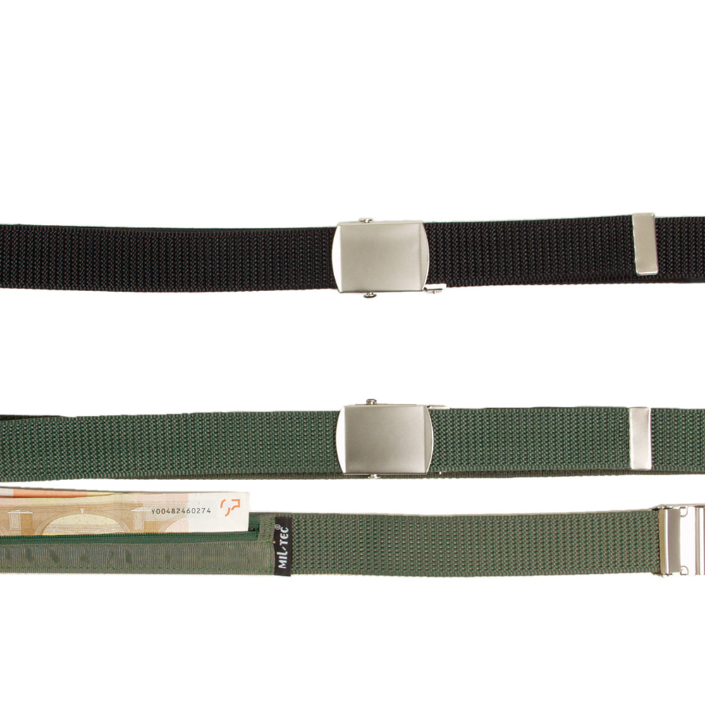 Bälte med blixtlåsficka för säker förvaring av kontanter.