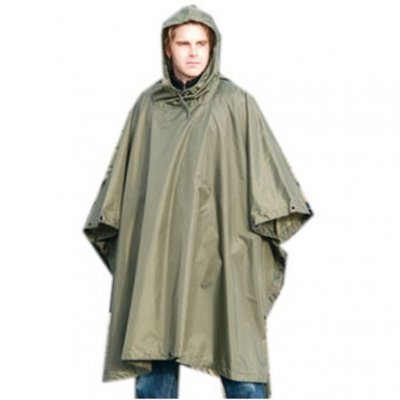 Stor och lätt camouflageponcho i ripstop-nylon (mycket lätt och smidig, men framförallt rivstark).