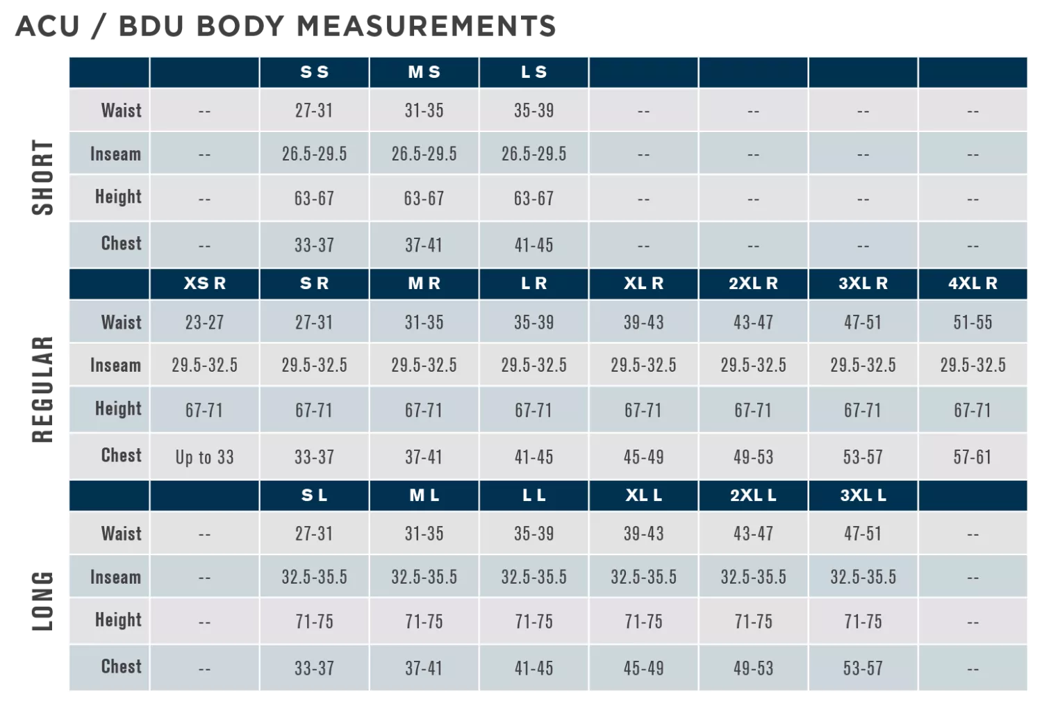 | Storlek | Midjestorlek (tum) | Midjemått (cm) |