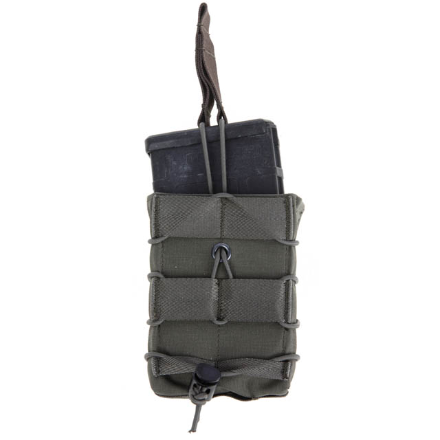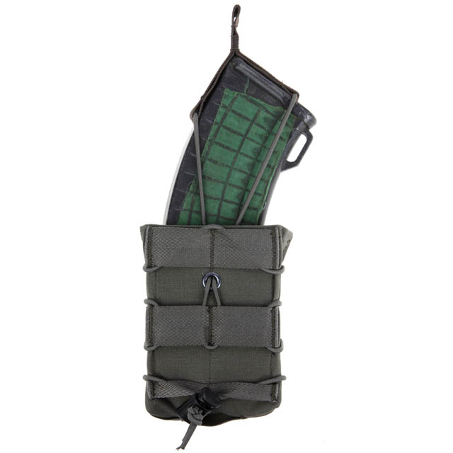 En liten och öppen magasinsficka för snabba byten med låg profil som inte bygger så mycket.