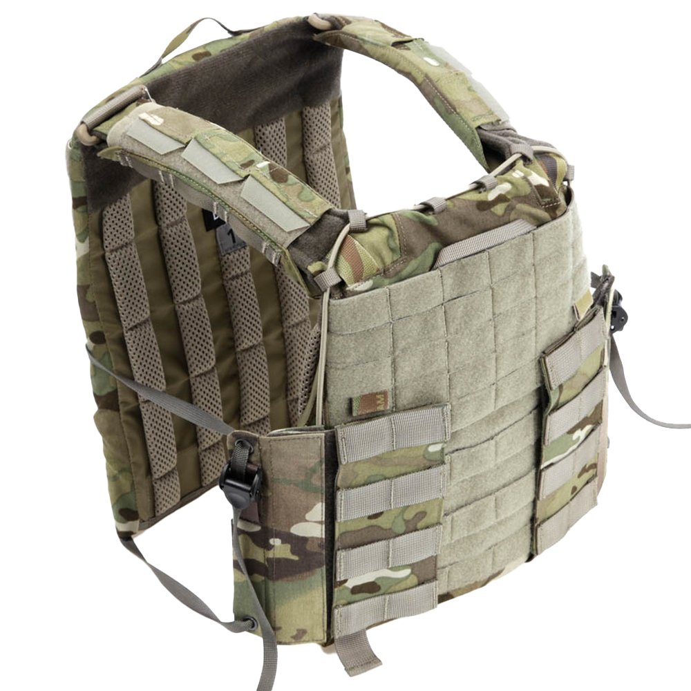 - Skumkanter på insidan för ökad ventilation, komfort och lägre trauma. Fack för ballistiska paneler och keramiska plattor på fram- och baksidan.