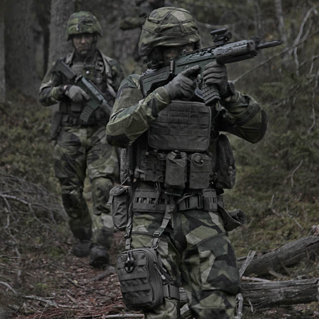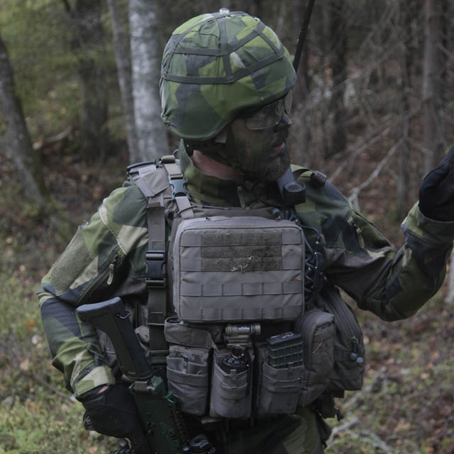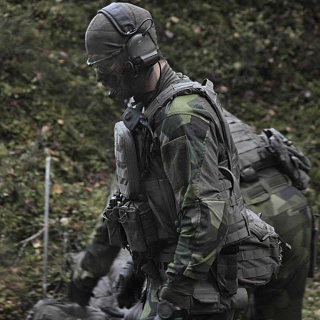 - Fäst den på utrustningsvästen och fäst sedan fickorna på utsidan av denna