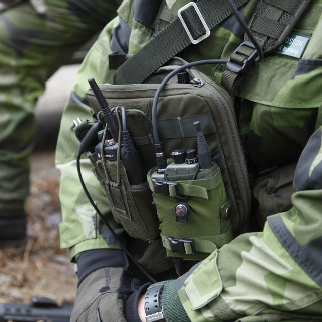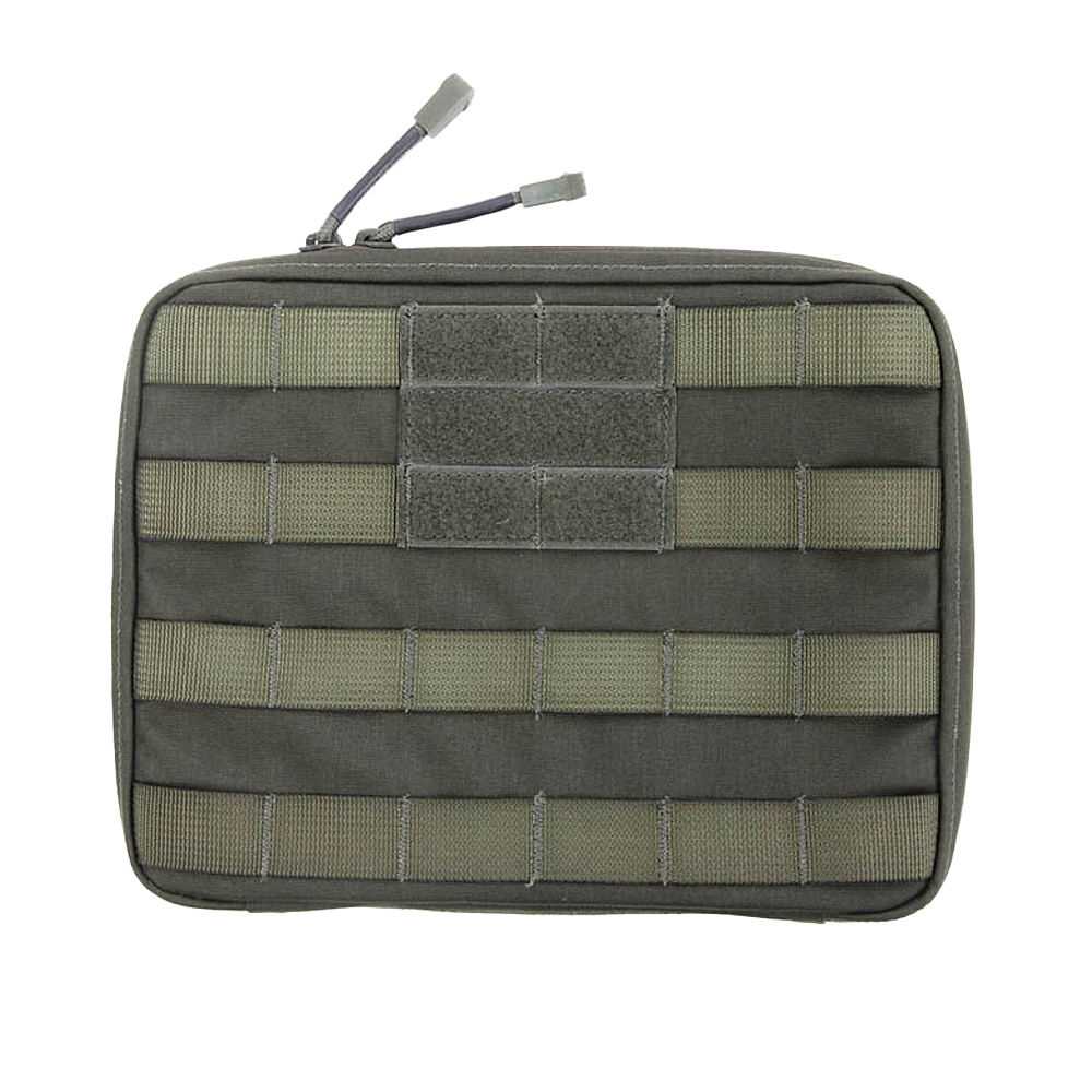 En ficka/pouch som kan fästas på utrustningsvästen för att förvara och tillgängliggöra kartor och anteckningsmateriel utan att västens bäryta minskar.