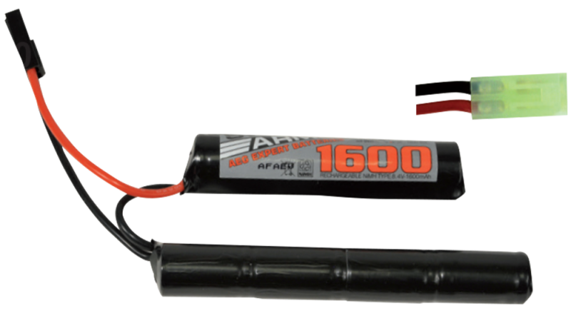 8,4V Tamiya Mini-kompatibelt batteri, med 1600mAh kapacitet. Detta batteri är särskilt lämpat för bakre kablar av M4-kopior med tvärkran eller Sopmod.