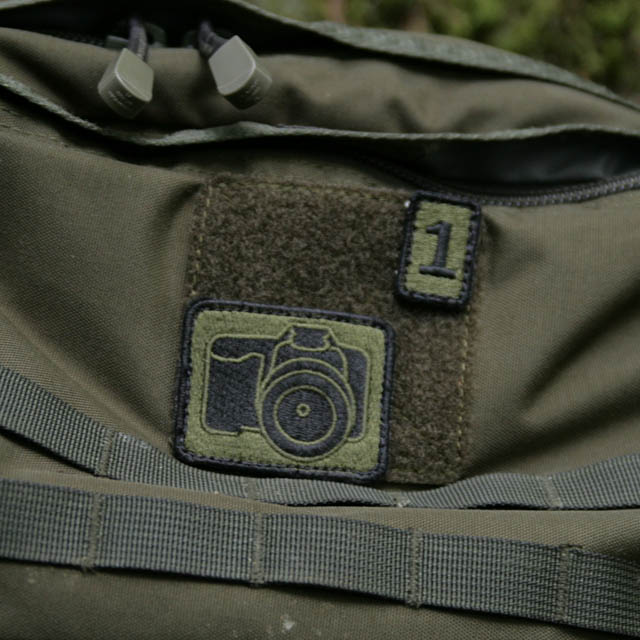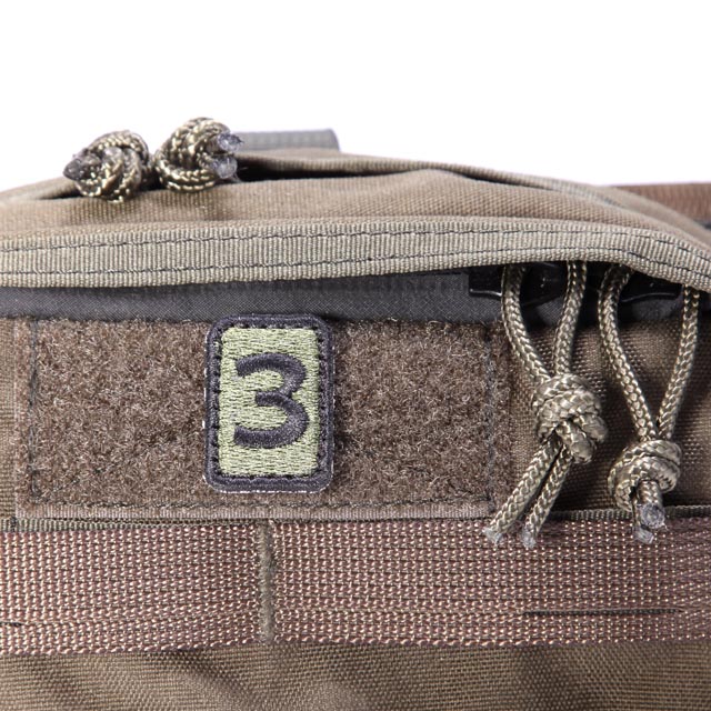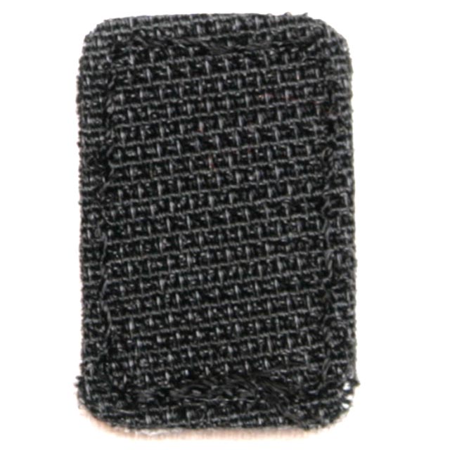 Kardborre på baksidan så att märket lätt kan fästas på filt ytor på väskor och påsar.