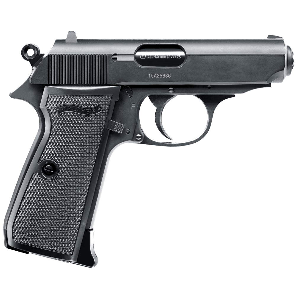 En av de mest populära WALTHER pistolerna i Umarex-serien har förbättrats: Walther PPK/S i helmetall har nu en ny håltagningsmekanism för CO₂-patronen – den är osynlig när pistolen ses i profil. Den erforderliga insex nyckeln är en del av grepp plattan och finns därför alltid till hands. Den tunga rutschkanan genererar en märkbar bakåteffekt.